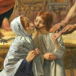 In a sense, Dickens was correct to comment upon the grotesque in Millais’s painting of the boy Jesus in carpenter’s workshop. Yet, beauty is often intermingled with the grotesque. The Millais shows us this dichotomy and in this way serves as an apt meditation on the very tactile nature of what it means for Jesus to suffer on the cross for our sins as well as for us to bear our cross daily. My hope is that during this Eastertide, we may have a renewed sense of how our embrace of the cross places us at the intersection of the grotesque and the beautiful.
