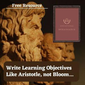 In a series of articles on Educational Renaissance, Jason Barney proposed replacing Bloom’s taxonomy with Aristotle’s intellectual virtues as the proper goals of education: