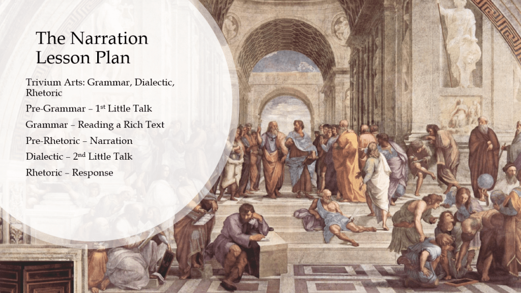 Narration is the first step in a process. This view finds expression in the Narration-Trivium lesson structure that I developed based on Charlotte Mason’s narration lesson for young children. By following up narration with dialectic or analytical discussion, teachers can help deepen students’ understanding from a bare recital to fuller comprehension. This functions like the digressions down alternate routes in Comenius’ analogy. Practice then corresponds, to some extent, to the rhetoric phase or response to the rich text.